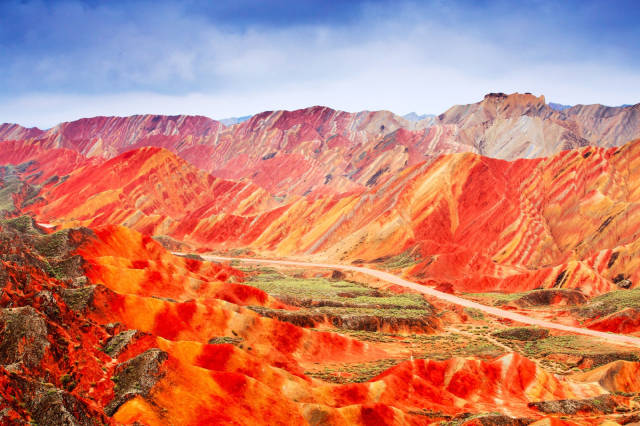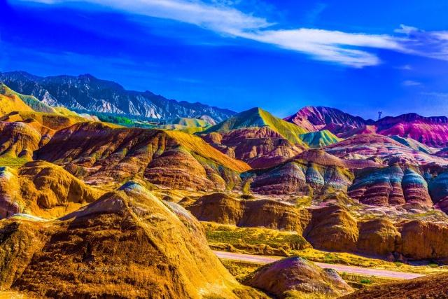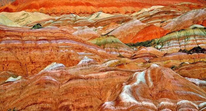 张掖丹霞地貌奇观形成于600万年前,位于张掖市临泽、肃南县境内,面积约510多平方公里。这里是国内唯一的丹霞地貌与彩色丘陵景观复合区,张掖丹霞地貌和彩色丘陵处处引人入胜,美不胜收。山岳风光、千姿百态是一景,怪石峥嵘、形象逼真又是一景;雄伟壮观、精雕细刻的窗棂宫殿群落是一景,气势宏伟、缤纷绚丽的彩色丘陵。