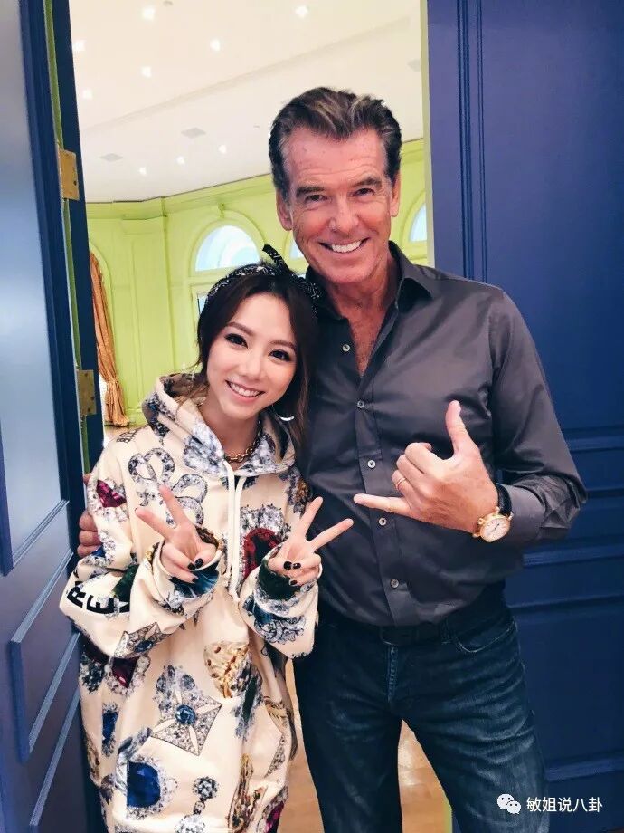 和偶像合照的邓紫棋开心到不行,用她自己的话说就是笑到看不见眼睛。