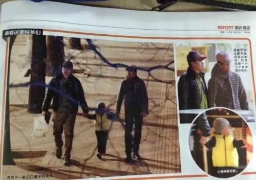 在2013年,有记者还真拍到过蔡国庆“一家三口”的照片。只是当时“另一半”是一名男士。蔡国庆和一位年轻男士一起牵着一个三四岁大的小男孩的手,三人并肩同行,一边走蔡国庆还一边小声跟黑衣男士说着话,脸上带着谆谆叮嘱的“当家人”表情。(不要太和谐,小编会想歪的!)