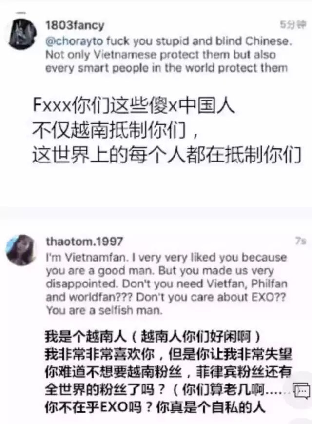 “滚出韩国”、“滚回中国,不要出现在韩国”