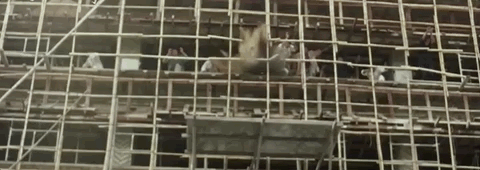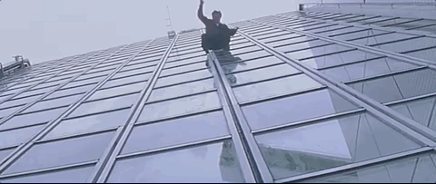 1995年,电影《红番区》,没有任何保护措施的情况下,徒手从一栋高楼跳到另一栋高楼的阳台。