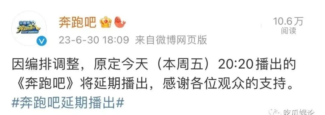 在大家想要看看蔡徐坤最近的动态有没有受影响的时候,给大家唯一希望的他的常驻节目《奔跑吧》在6月的最后一天宣布延期播出,而此前节目组的宣传片还出现过蔡徐坤的画面。在这个节骨眼上,不管节目组说什么样的理由,不言而喻的真正原因还是因为蔡徐坤的影响。不知道此时的节目组是什么样的感受。因为很多艺人在塌房之前都会被停掉一些工作项目的进行,这次停掉岂不是默认了蔡徐坤的行为!可能下次选人的时候,各位导演不仅仅是要看是否顶流这一条件,还要看这个艺人的道德品行了。