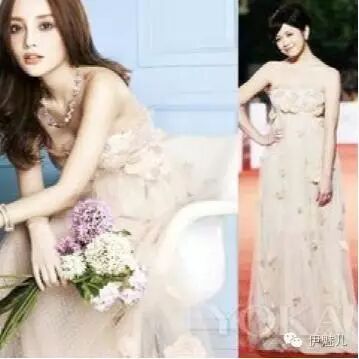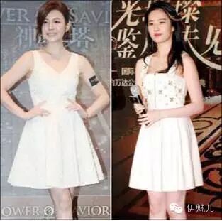 白色系的短款礼服,仙气满满的白色网纱式礼服,本身就比较符合刘亦菲神仙姐姐的气质,手中搭配的蝴蝶结配饰更是美翻了,感觉这个人就是从仙境中走出的公主一般,纯净无暇!但陈妍希穿上这件衣服,脖子就仿佛不见了,画风感觉有点怪异。