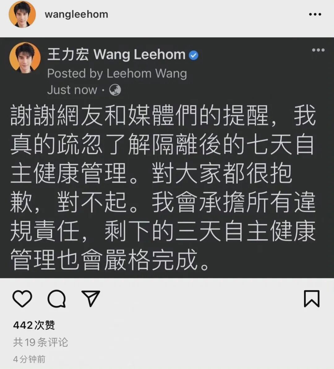 橘子晚报/王力宏防疫不当将被罚?时隔8年龙门镖局主创再聚! 橘子娱乐 港台男星 2021-09-18 18:33:30 646 创作不易,用心坚持,欢迎请BaGua喝几杯爱心咖啡!打赏并支持本文 打赏并删除本文 编辑:ABCD钙王力宏防疫不正当刚解除14天的居家隔离,王力宏就外出去朋友家聚餐?↓不符合规定吧,还有7天自主健康管理呢。被网友指出后倒是很快就发文道歉了↓据说卫生局也会介入调查↓大家一定要按规定防疫呀 创作不易,用心坚持,欢迎请BaGua喝几杯爱心咖啡!打赏并支持本文 打赏并删除本文 感谢您的支持鼓励,我会继续努力的!文章地址:用户邮箱:打赏金额:USDT 请输入数字点击”去打赏“,即可进行打赏支持本文章哦 王力宏 About the Author 橘子娱乐 功能介绍:橘子娱乐™ 给你快乐!橘子娱乐只提供新鲜、时髦、有趣的娱乐内容。我们拒绝平淡无奇的流水账,更鄙视毫不走心的娱乐态度。好内容值得被分享。 官方认证:北京橘子文化传媒有限公司 Related Posts 好久不见边伯贤啦,今天迎来退伍后第一次正式回归! 2023-07-10 20:57:24 还记得日本明星福山雅治吗?他怎么变成这样了? 2023-07-05 21:05:38 好久不见张根硕啦!也太肿了吧? 2023-05-19 17:35:59 还记得香港歌手孙耀威吗?他在悄悄秀恩爱? 2023-04-30 16:32:32 还记得古巨基吗?3岁儿子长这样? 2023-01-12 16:55:34 发表评论