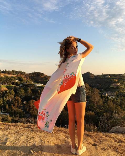 ▲ 印花外套+同色系吊带+超短裤,是最舒服,最不会出错的搭配,几乎所有防晒外套的搭配都可以按照这一原则。想突破的姑娘可以走撞色路线。