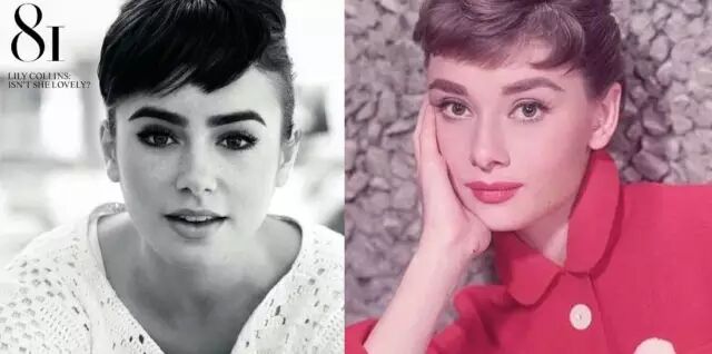 要数模仿赫本最成功的还是Lily Collins。左边是lily collins,右边是赫本。