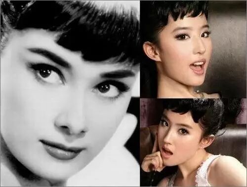 虽然发型和妆容都是按照赫本整的,但明显刘亦菲不适合。刘亦菲长得属于中式古典美女,眼尾本身就自然上扬,形状是细长的凤眼。