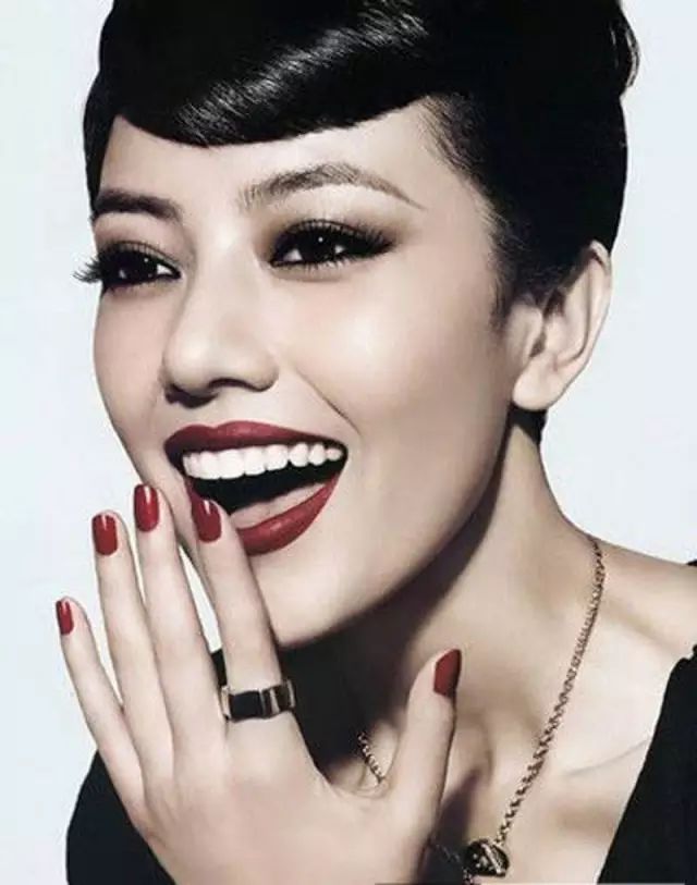高圆圆的“赫本妆”造型大胆许多。大红唇、浓重的眼妆。