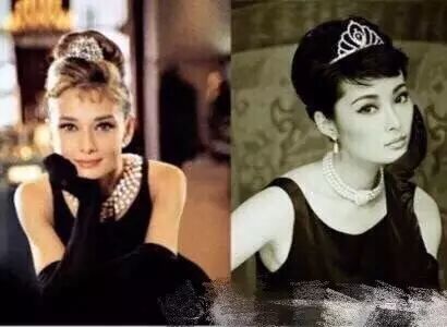 其实,杨幂确实长得有点像赫本,五官都比较大,线条相对硬朗,眉骨和鼻子最像。