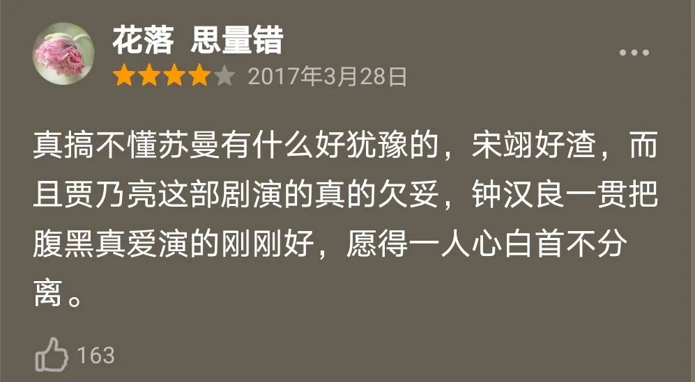 但观众还是很意难平:你这个结局我不接受,我的心里只有陆励成(钟汉良的角色)。