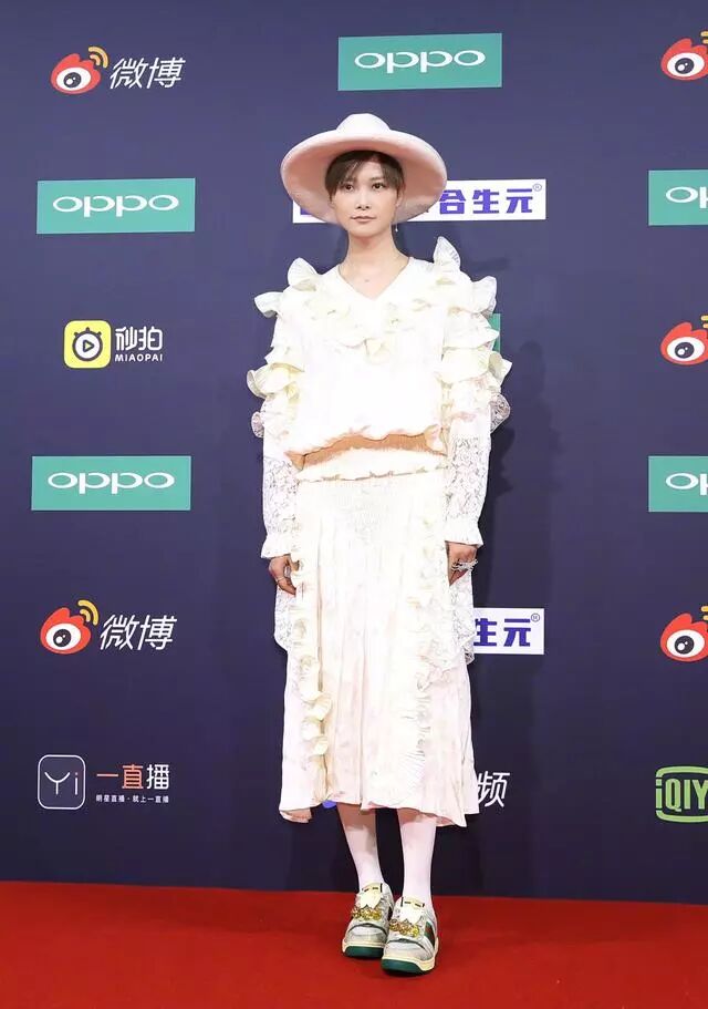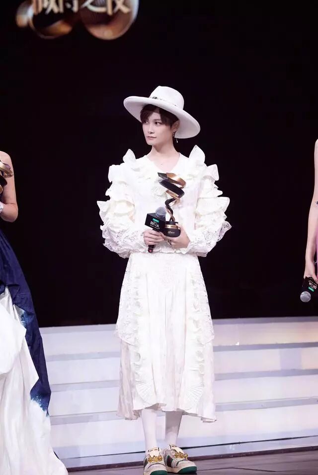 微博之夜的活动上,李宇春穿着一条淡黄色的连衣裙,清新动人许多,淡黄色又有点儿白色的颜色赋予她更清爽干净的一面,也蛮符合李宇春利落的气质。这条裙子的颜色本就嫩嫩的,甜甜的,上面有着一层又一层的花边,还有着蕾丝,非常少女甜美的设计了,穿在春春身上也是少女许多。