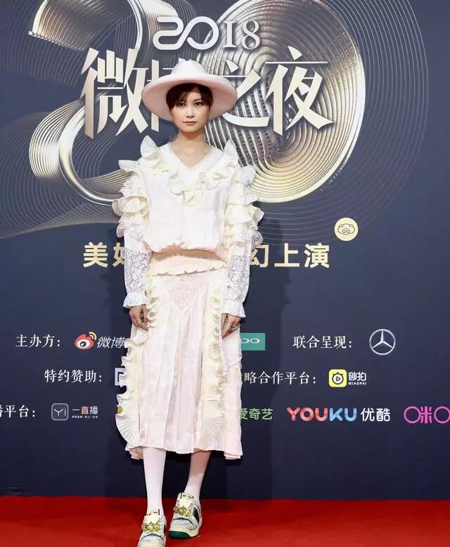 以前李宇春参加活动都会穿搭个性一些,而这一次其实穿着也比较独特,但裙子过于甜美少女,也让李宇春变得少女了起来,再加上她帅气的气质,让这一身造型又甜又盐,美美的!脚上穿着白色丝袜也是梦幻甜美许多了,和裙子搭配在一起更显少女感!