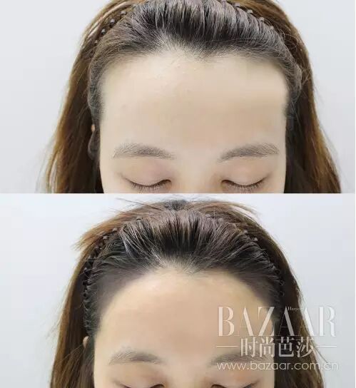 有的人天生发际线靠后,脑门过于“宽阔”,这时候就需要用填补的手段来修饰发际线。