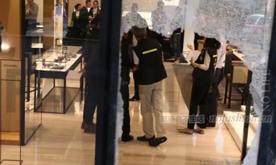 据港媒报道,凌晨4点左右商场保安发现Chanel门店的玻璃大门被凿出破洞,店内有被搜掠的痕迹,而且玻璃破碎一地,于是报警。目前港岛区重案组已经接手调查,通过查看闭路电视初步相信4名黑衣盗贼在80秒内便卷走了大量商品。有保安专家猜测该店因为没有使用强化玻璃故轻易被盗贼砸穿。