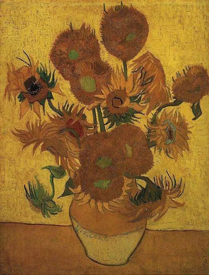 梵高在给弟弟费奥的信中这样写。假如有一天梵高的黄色向日葵在画中慢慢凋零,从鲜艳的花枯萎成霉烂的残枝,你还会继续爱梵高吗?