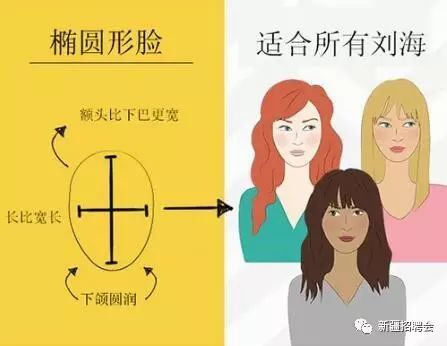椭圆形脸是最均匀理想的脸型,特点是额头与颧骨等宽,同时又比下颌稍宽一点,能hold住所有刘海哦。