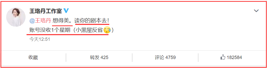 账号没收一星期,我们外人不知道是说此号一周内不让任何人登录还是不让王珞丹登录,这就是最灵活机动的回复了,工作室确实厉害,文字游戏玩得飞起来!