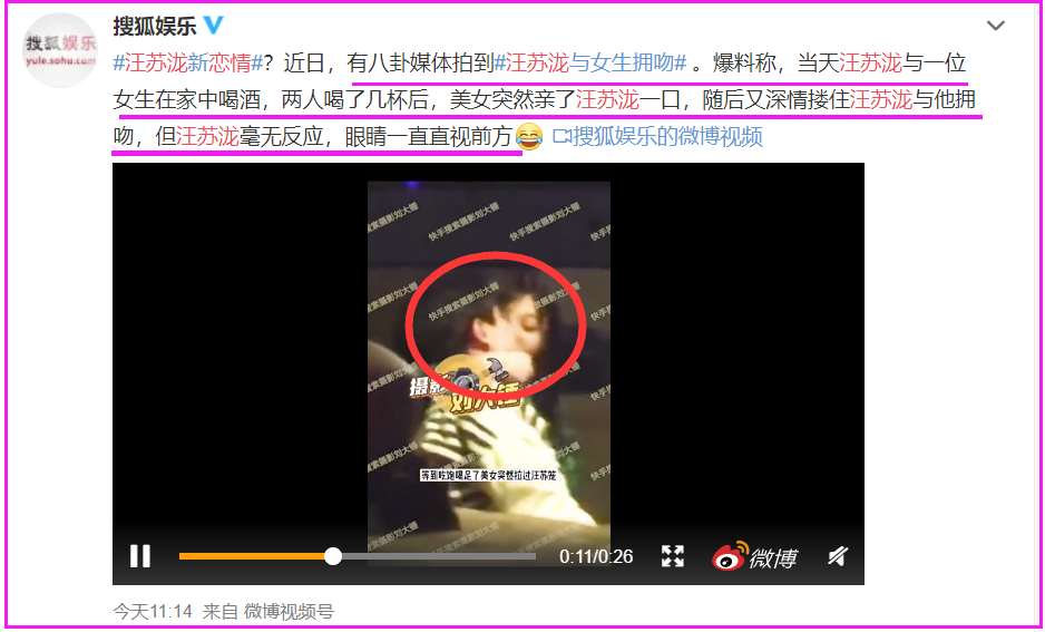 原本是汪苏泷被一个女生拥吻,然后恋情曝光的事。