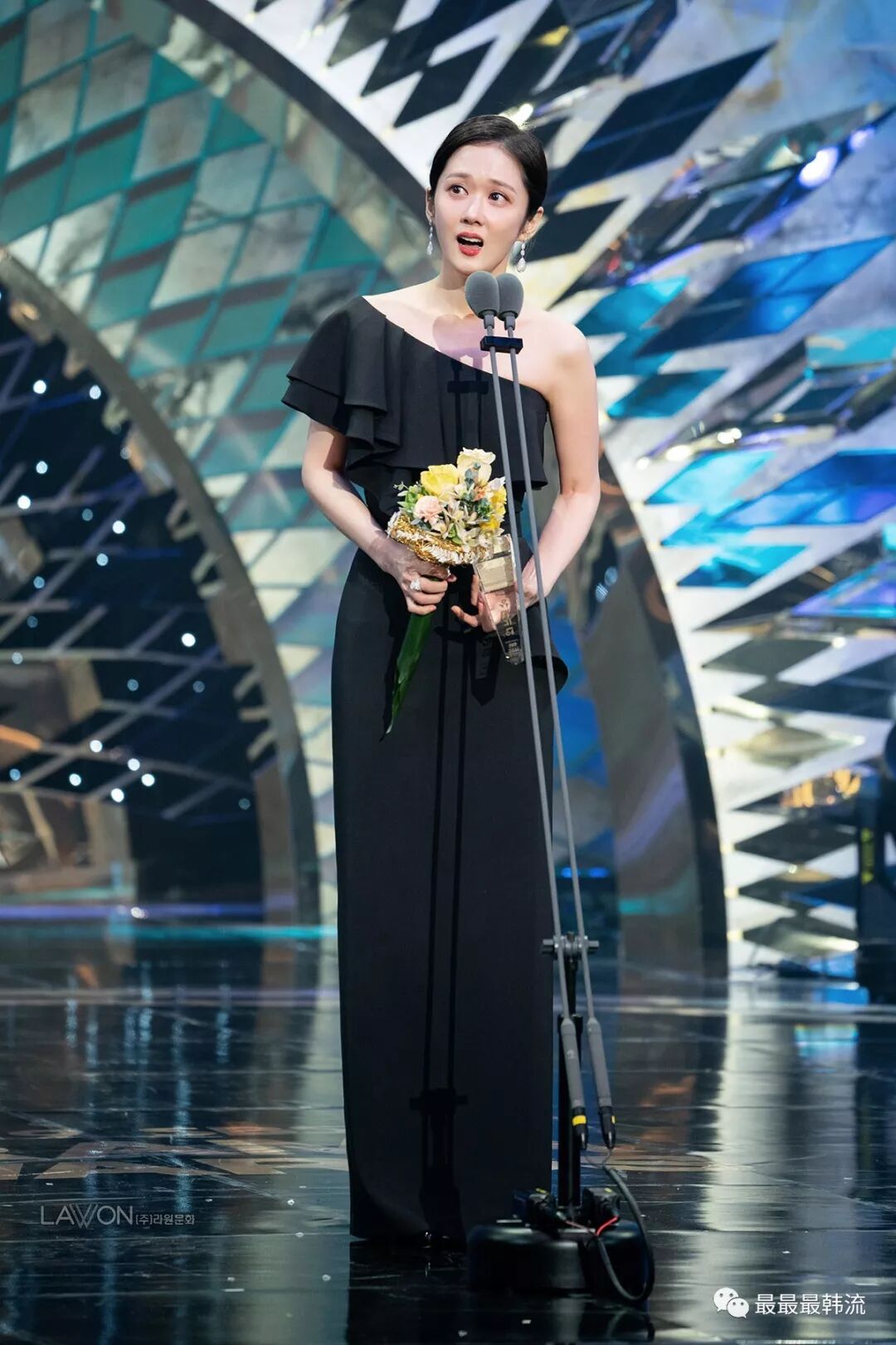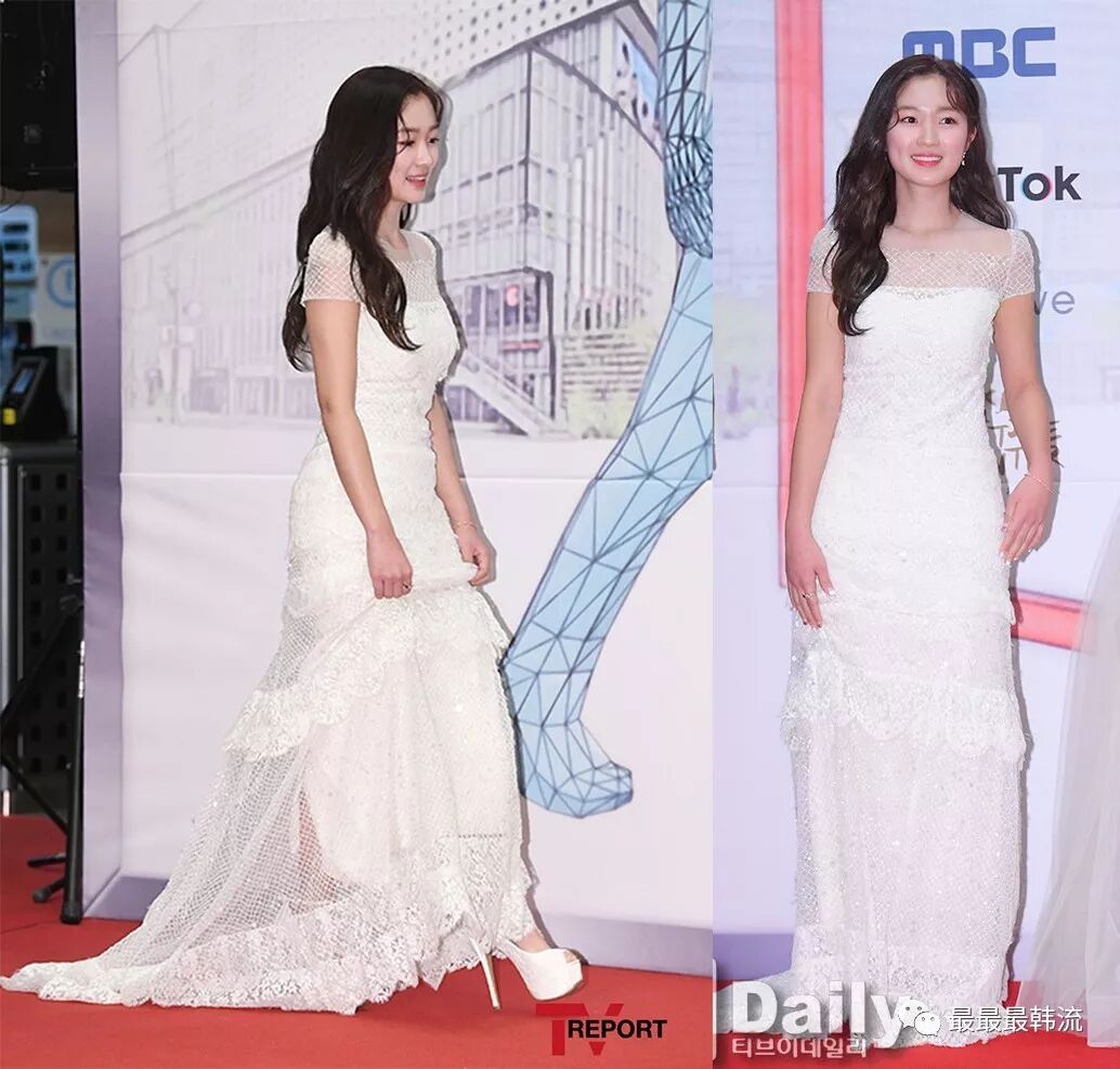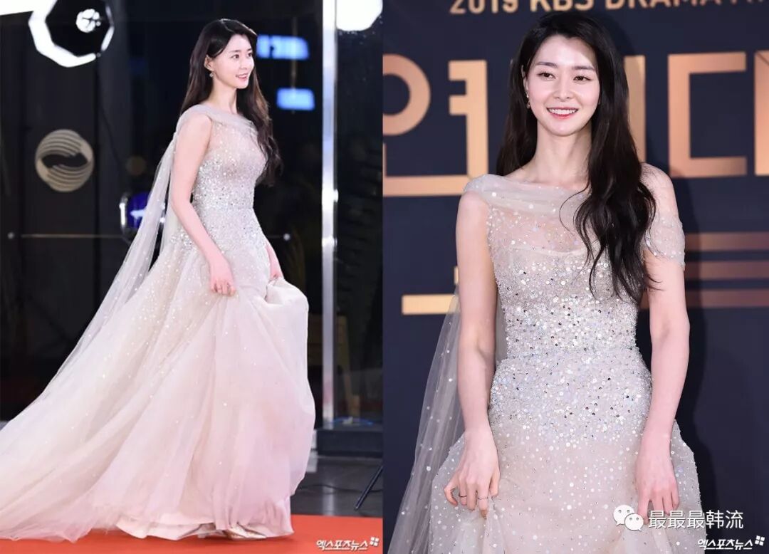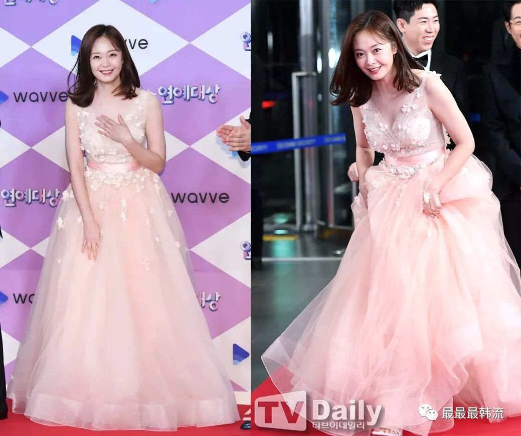 我来总结一下各大电视台演技大赏的特点,SBS演技大赏上女演员的礼服偏华丽优雅,而KBS这边就是偏大气端庄。