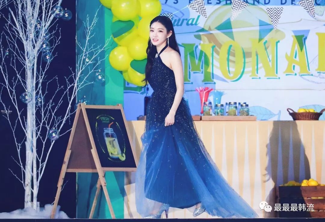 这条裙子...不知道是因为材质还是颜色,就莫名的有种很廉价的感觉。裹胸设计露出了林智妍好看的锁骨没错,但她太过瘦削,整个人看上去有一种大头娃娃的感觉,如果肩部有一些设计可以修饰身形的话效果会更好。