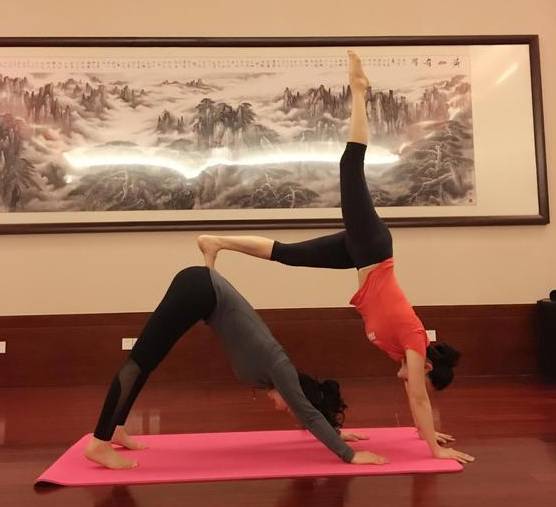 董璇甚至还玩起双人瑜伽,网友纷纷评论:“简直是少女”、“这身材,哪像生过孩子!”