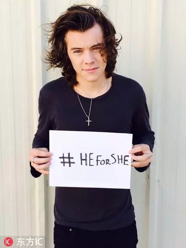 抖森、“卷哈”Harry Styles等男明星纷纷响应号召,在社交媒体上晒出照片力挺“HeForShe”运动。