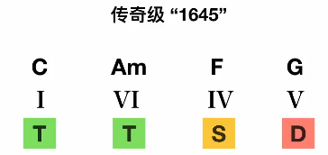 那么所有人都会弹的1645和弦,其实就是一个非常非常标准的T-S-D-T的终止式。