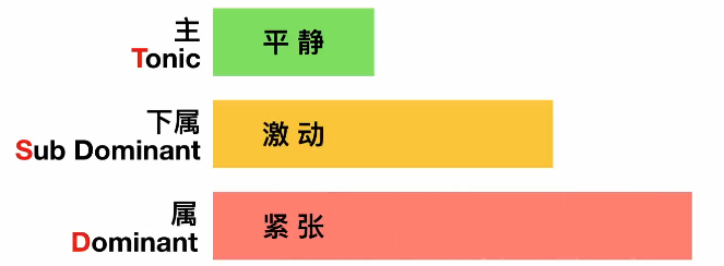换言之,F和G更具有那种想迫切回到主音C的感觉。因此人们总结出了:“功能”