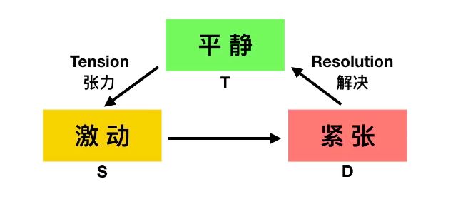 通常是平静-激动-紧张-平静的,而不是D(紧张)→S(激动)→T(平静)。这样会给人一种很扫兴的感觉。