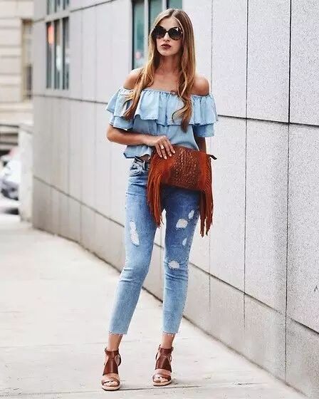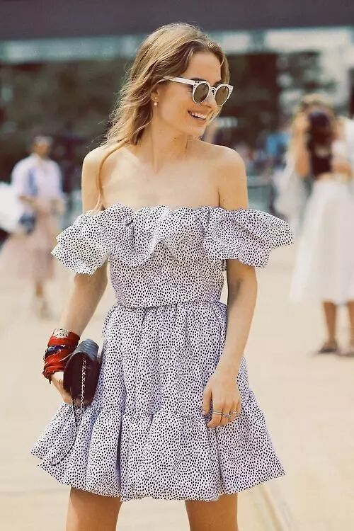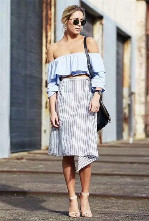 露肩荷叶边上衣可以从春天穿到夏天,轻盈俏皮的感觉宛若少女~▼
