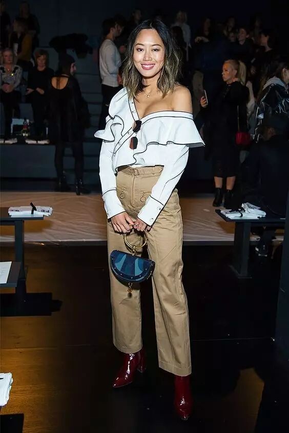 搭配阔腿卡其裤时髦优雅~不管出席什么场合都很合适~▼