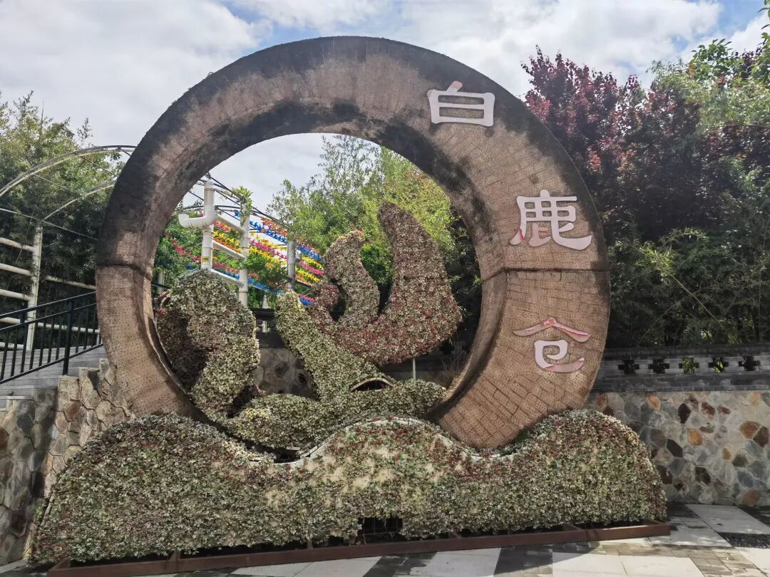 走完高高的台阶,进入“白鹿仓主题乐园”,一个孩子们的世界出行在眼前,高大的摩天轮、悬天的过山车、奇特的碰碰车等是他们的最爱。后仓的“白鹿仓现代农业观光园”里,塑着一颗硕大入云的白菜,似乎在向游客们展示着白鹿原的美好生活;一个个大棚里西瓜蔓已经遮住了地面,漂亮的绿叶正在预示着丰收的未来。