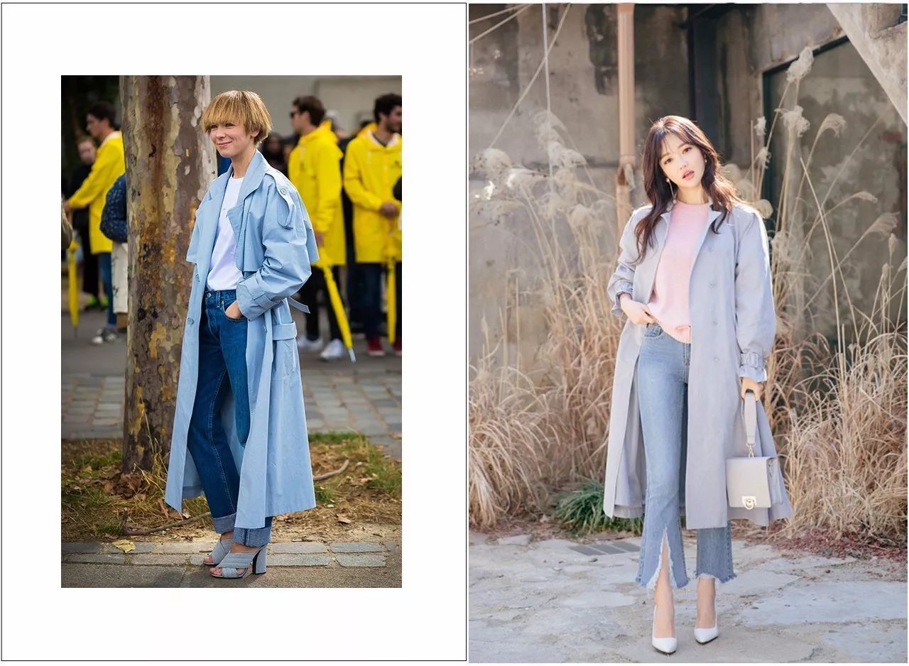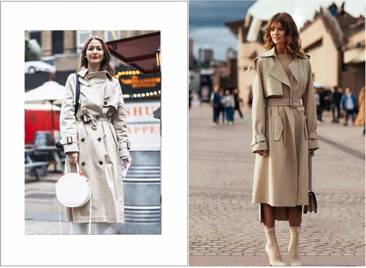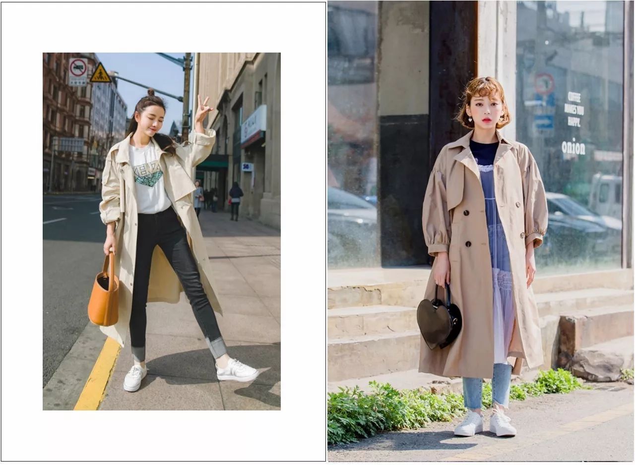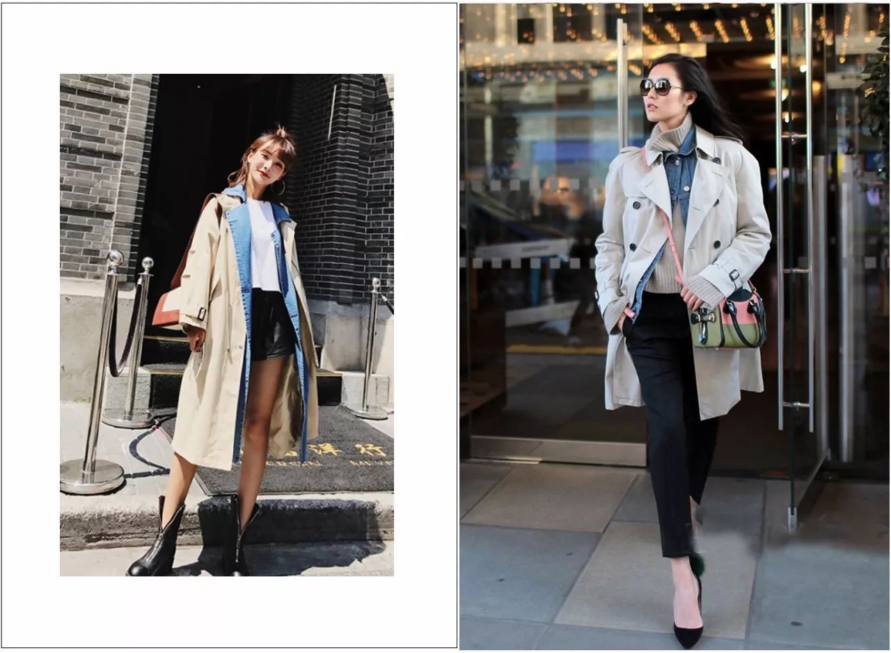 觉得自己腿部不完美的,又想要穿短款风衣,根据自己的比例选择好长度是关键!左边的菇凉个子不高,如果不是穿了高跟鞋,整体看起去也会蜜汁尴尬!右边的打扮就顺眼了很多。