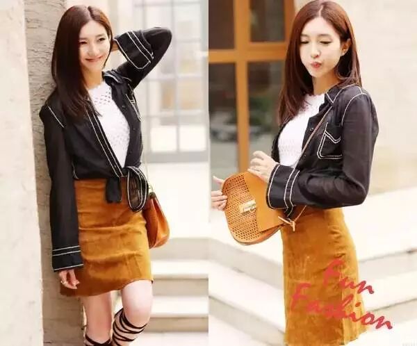 黑皮裙机车style,甜美外透露出的小叛逆也是Real赞!