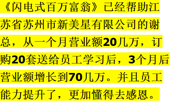 #1:立刻拨打13713557648沈老师,跟他申请订购《2016闪电式百万富翁》这套产品。
