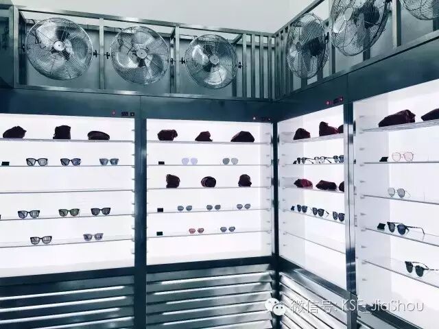 顺着冰箱门进去,就像真的进了大冰箱。头顶有嗡嗡嗡的冰箱风扇声,和老式冰箱的风扇声一模一样~墨镜就一排排放在冰箱架子上。