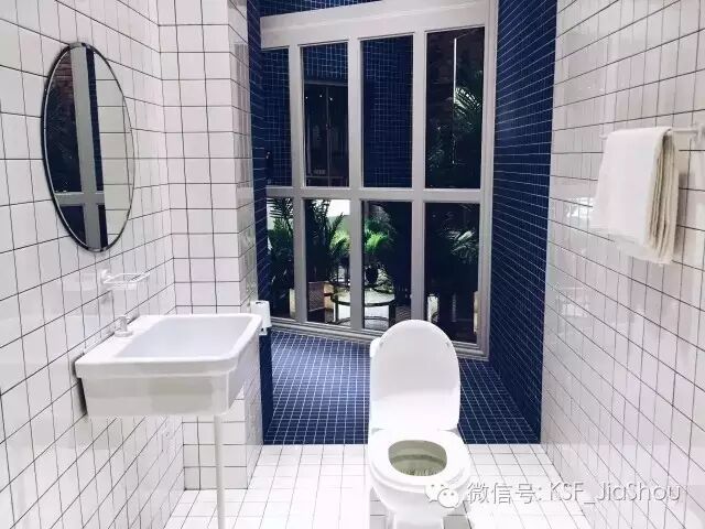 回到玄关,屏风后面、花园空间的外面是“洗手间”。白色的瓷砖、白色的洗手盆、白色的马桶、白色的毛巾,满足一个洁癖强迫症的一切幻想。