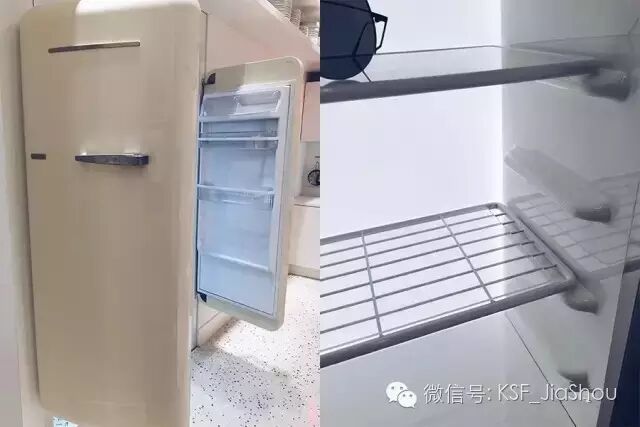 唱片料理台对面的入口是复古双开门冰箱,冰箱门的细节都惟妙惟肖,感觉看到了小时候自己家用过的冰箱。里面陈列墨镜的货架,也做出冰箱隔断的感觉↓↓