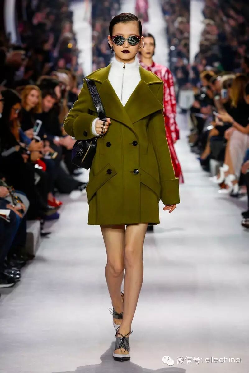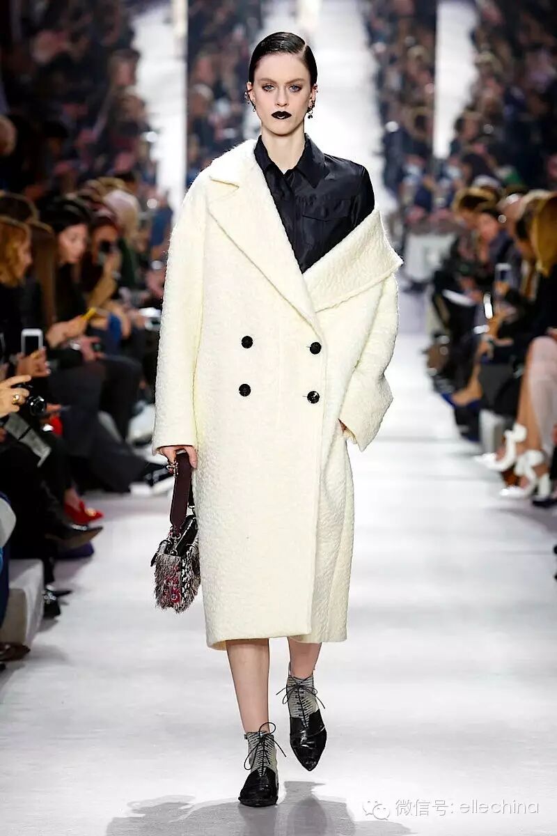 同时,秀场上也出现了不少膝上长度的双排扣外套,尤其配上别致的大翻领设计,同样也是时髦又经典。而经典廓形的各式A字收腰长大衣,更是延续了前几季的标志性廓形。