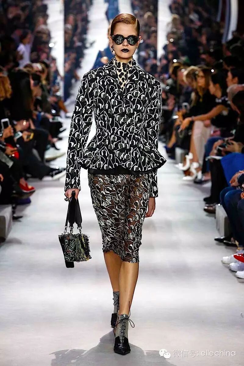 全场随处可见花样繁多的各式提花,灵感则来自于迪奥先生的标志性素描,或是抽象图案、或是植物纹理、又或是动物纹,为简约的廓形增添一抹别样风情。