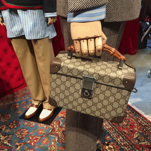 最后,芭姐要强烈给你种草这款看起来具有Luggage风的男士拎包,是GUCCI与英国制造箱包的百年老店Globe-Trotter合作的一款,包身运用箱包经典的设计风格以及GUCCI花纹,并结合了竹节手柄,可以说十分复古了。芭姐上手拎了一下,小巧的风格同样也非常适合女生。