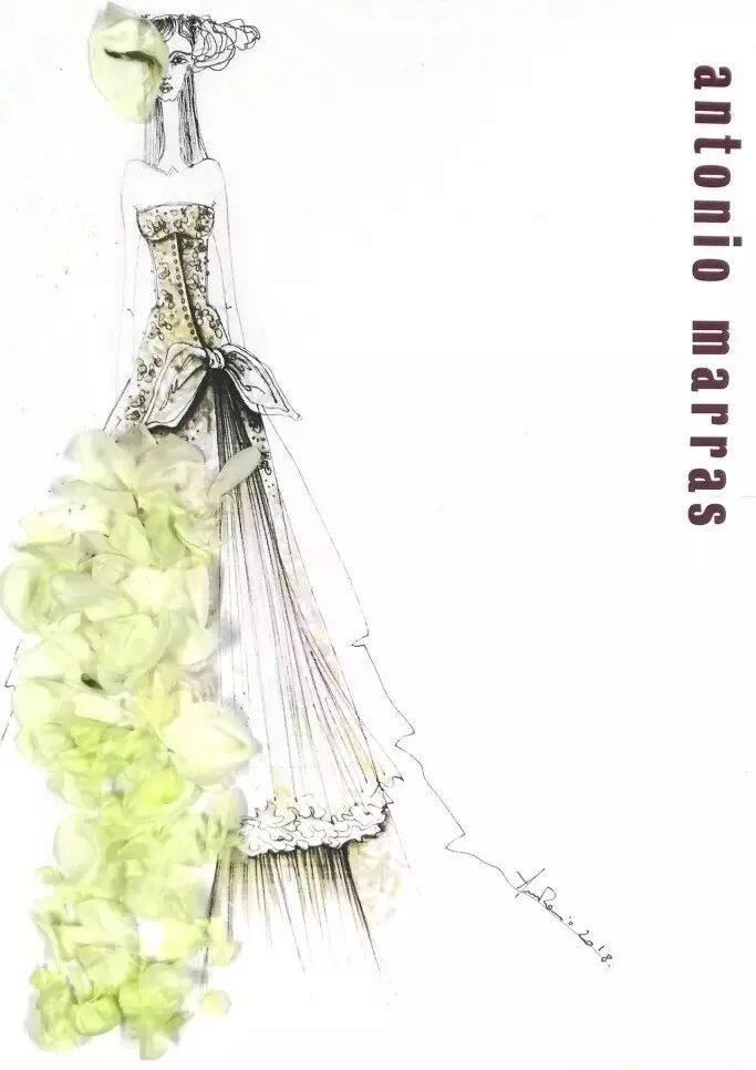Antonio Marras 眼中的 Meghan 可谓是华丽 Plus 版,一身珠宝装饰的加长紧身衣、被鲜花簇拥的蓬松裙摆以及盘在腰间的精致蝴蝶结