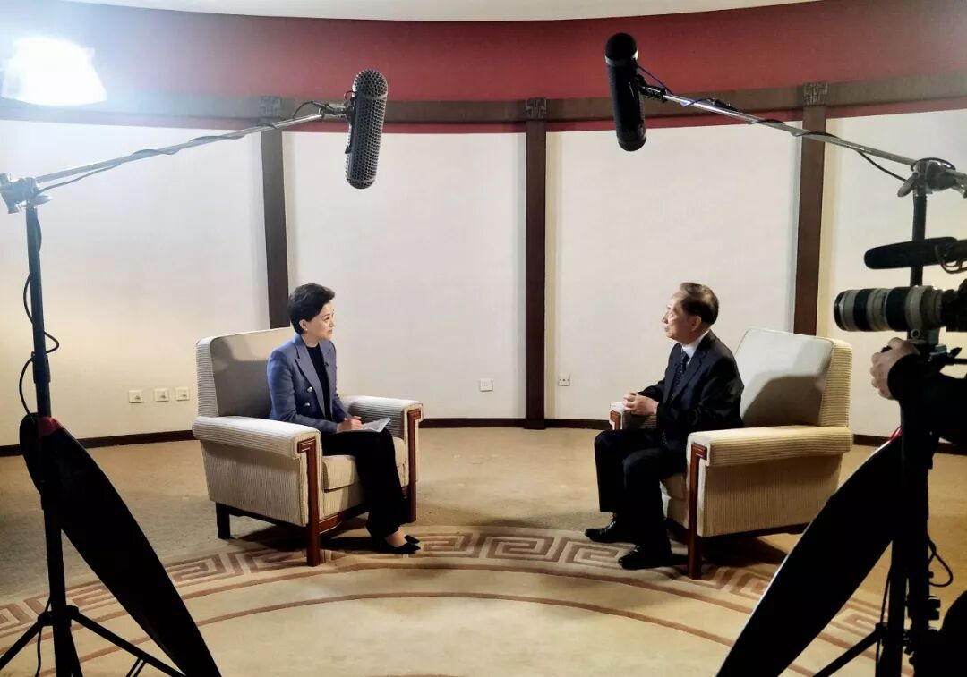 ▲杨澜在清华大学采访清华人工智能研究院院长张钹