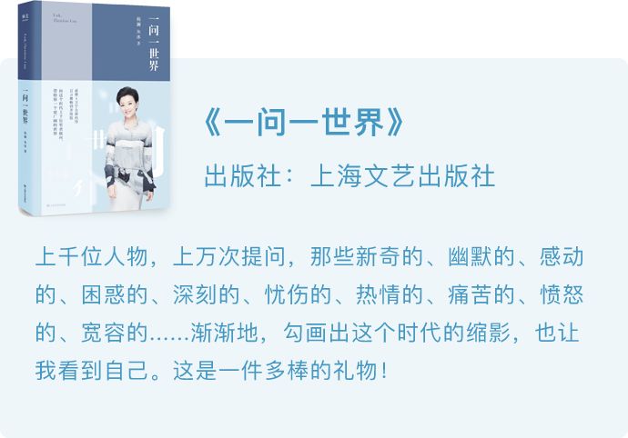 参与话题互动,小志将在留言区选出3位留言精彩的小伙伴,每人赠送一本杨澜亲笔签名版新书《一问一世界》。截止时间:3月12日下午5点。