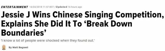 Jessie J在中国歌唱比赛中夺冠,她说自己打破了边界。
