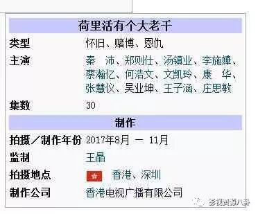 根据维基资料显示,这是TVB香港电视广播有限公司和王晶公司合作拍摄的又一部新剧——《荷里活有個大老千》,是延续80、90年代一度盛行的赌片、赌神的元素来重新炒炒,类型就是怀旧赌博恩仇剧。阵容中的主角就由曾经港片中的资深艺人秦沛、郑则仕、汤镇业领衔主演,年轻的由蔡瀚亿、何浩文、文凯玲、康华、李施嬅、吴业坤等人出演。
