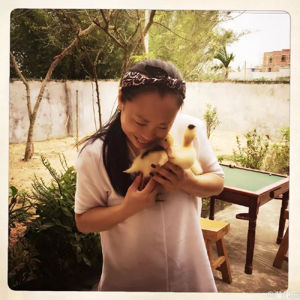 经常会在weibo里看见她自己在地里摘菜的情景,简直是接地气接翻了,小鸭子小狗也是她的玩伴,瞧瞧把狗弄的,都不敢动了。