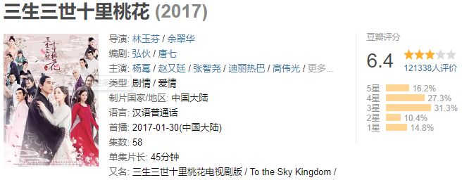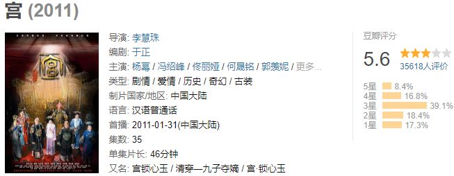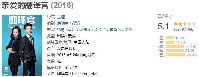 当然,会有人说《宫》、《翻译官》、《三生三世》就是杨幂的代表作,它们关注度确实高,但不代表作品优秀,不信可以上豆瓣查查评分。
