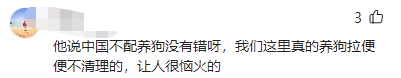 在视频中,根据翻译字幕来看,关于养狗问题,他曾直言“中国人不配养狗,很多人没有“捡屎”的习惯,狗屎到处都是。”