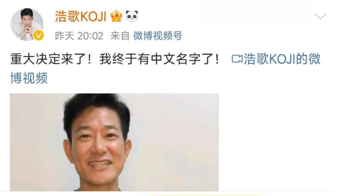 不少喜欢他的粉丝都称呼他为浩哥,可能也是因为这个原因,他几番思考后,直接为自己更换了一个中国名字:浩歌!